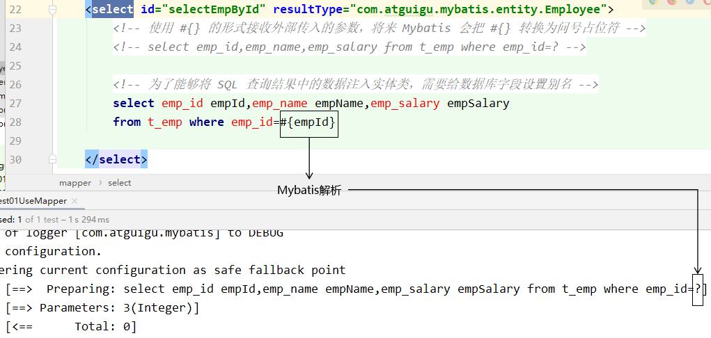 Mybatis会将SQL语句中的#{}转换为问号占位符。